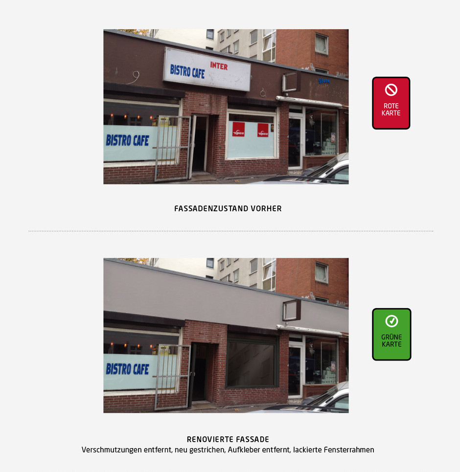 General condition: The facade should be clean and tidy, eg. reasonably free from dirt, graffiti and Beklebungen etc.