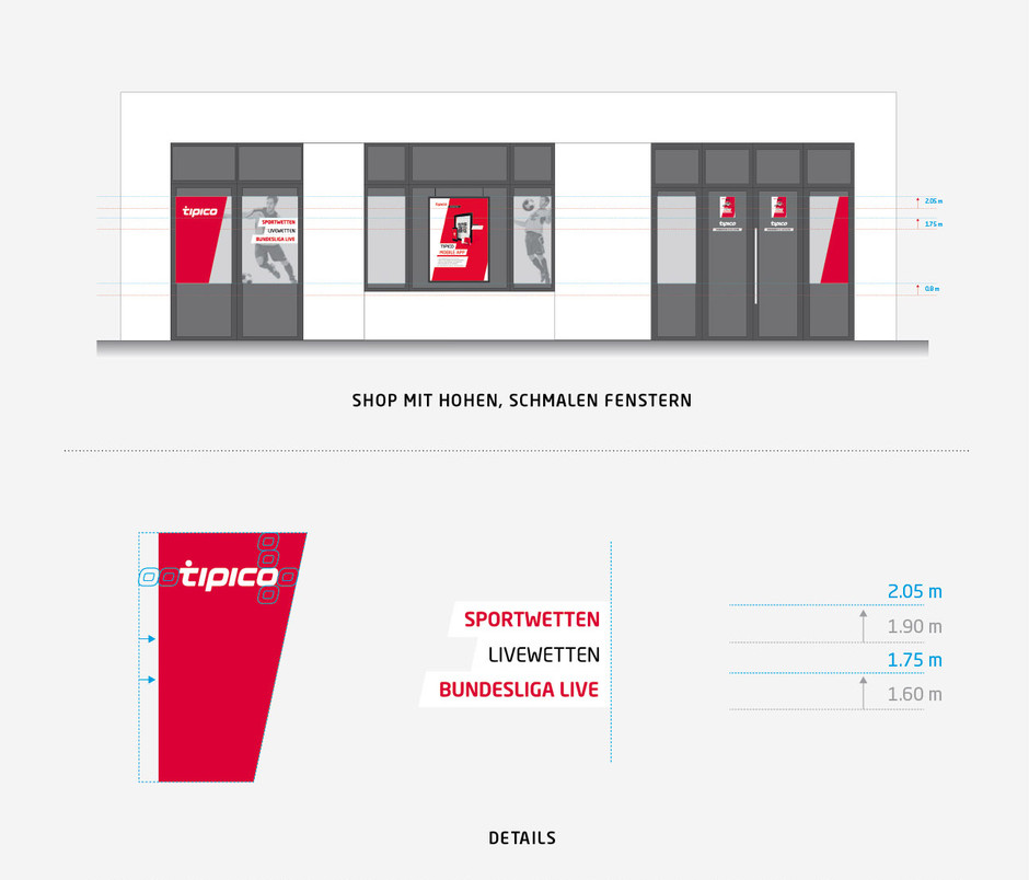 A betting shop in corner position offers the opportunity to make the Tipico brand of 2 pages visible.